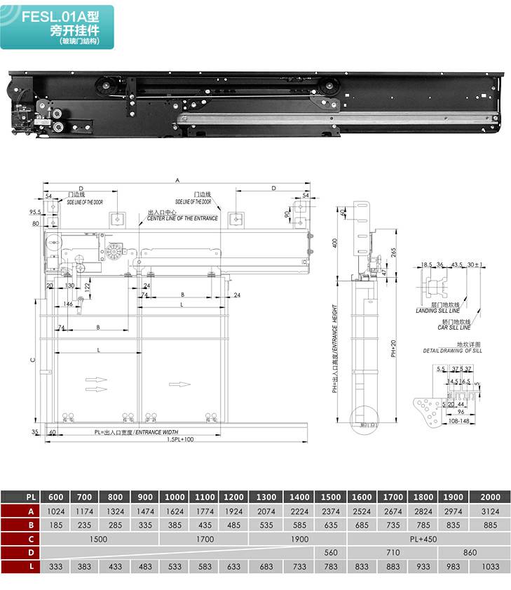 FESL.01A型旁开层门装置(玻璃门结构)